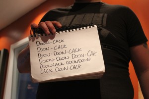 Lewis drummed and we joked the whole time about specific phrases that never get played by drummers anymore (ie. the 90’s hip-hop shuffle, the 8-beat random-sounding drum-roll), all the different ways you can write and imitate drums sounds with your mouth and how cymbal shots sound absolutely terrifying without a kick-drum under them.