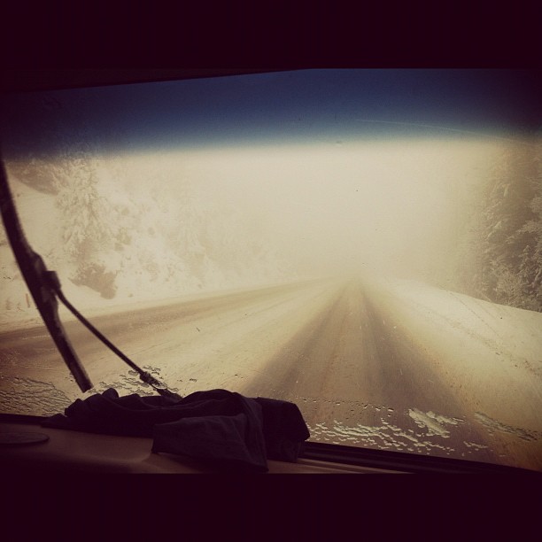 Today consisted of a twelve-hour drive from Calgary to the Tsawwassen terminal in Vancouver. We had packed the night before, so we would not waste time on trying to make the 9:00pm ferry to Victoria and just make it. The morning was like every other morning; groggy, confused, nauseous, searing Alberta sun through Kelly and Jayme’s enormous living room windows, a fine contrast to the many degrees below zero it actually was outside. It was a great stay and had been our home for almost five days, so we said goodbye and attempted to clean up after ourselves before we left, so as to feel a little less like small children and more like teenagers on an ill-advised road trip. I make apologies to Kelly and Jayme, for the mess and defilement of their pristine “Bathroom of the future” as Dan calls it. I ask Dan why he thinks it’s from the future and he tells me “Because it’s white and it stays that way.” We blast through the two provinces quickly and encounter only one snowfall upon Roger’s Pass where we sludge up the mountain in traffic to find that a big-rig has been pulled out of the ditch, the cab completely crushed and it’s pay-load spread out all over the embankment. Not cool. The image still haunts us. Can I get a “hell yes!” for a tour in the winter?
